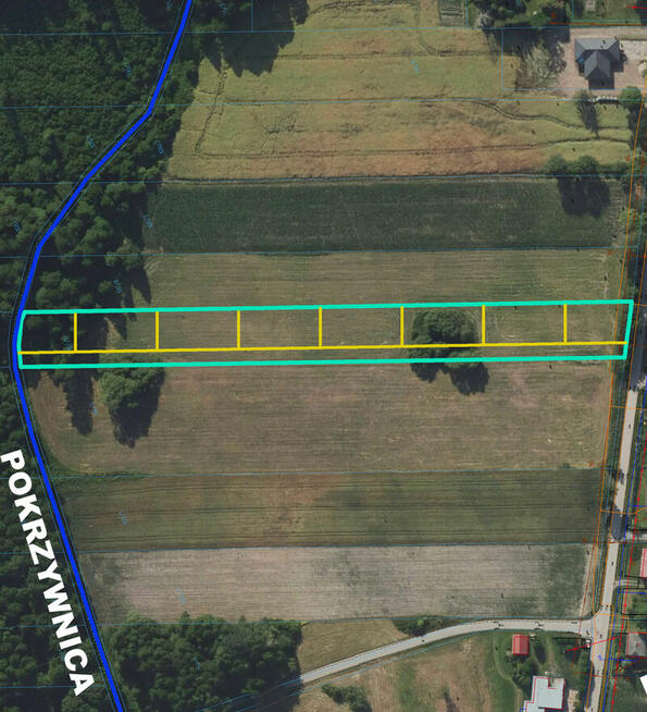 Działka budowlana o pow. 18000 podzielona na 8 mniejszych działek o pow. ok 1000m przeznaczonych pod zabudowę ...